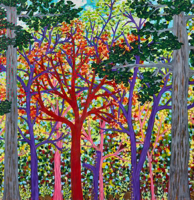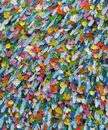 I create work through synesthetic perception, translating sound, emotion, and memory into color and form. My process is intuitive and deeply connected to nature and storytelling, shaping each piece as an emotional landscape.