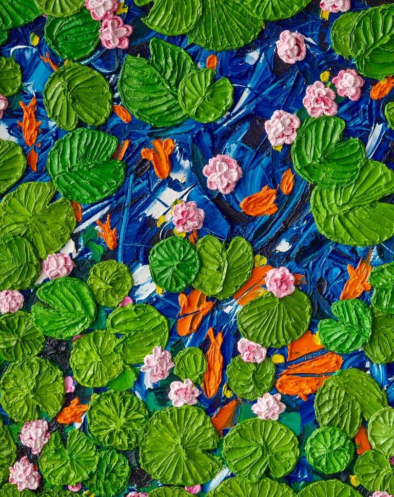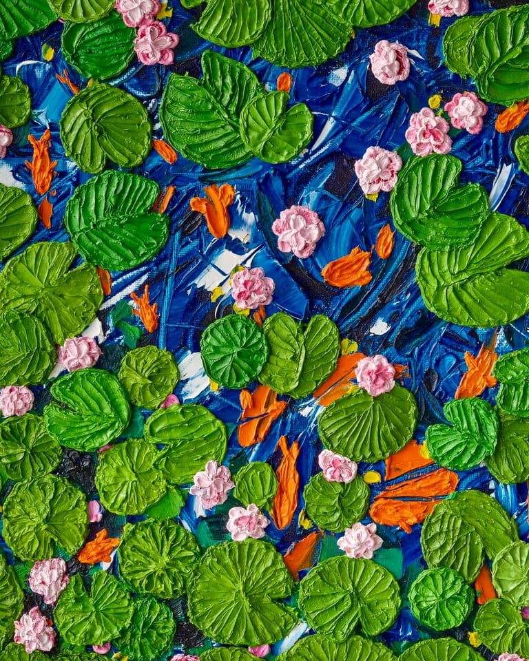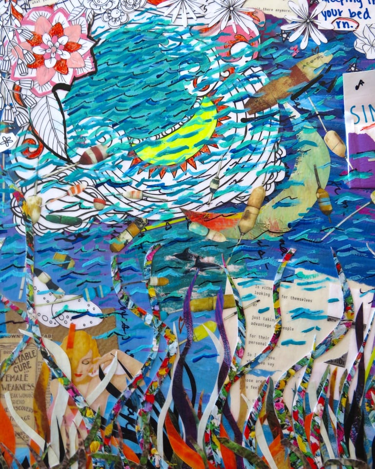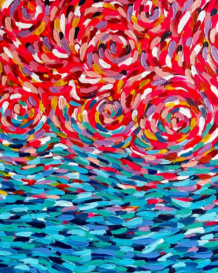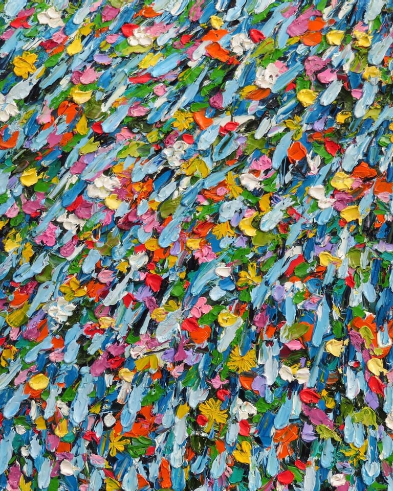 I compose through rhythm and repetition, building color until it holds movement like music in the body. Each piece becomes an environment, something to enter rather than simply observe.