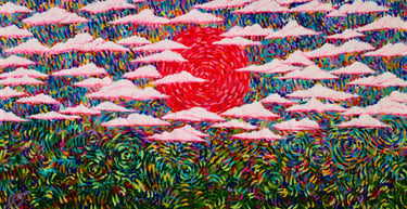 These works are built directly by hand, using thick acrylic applied in layers.