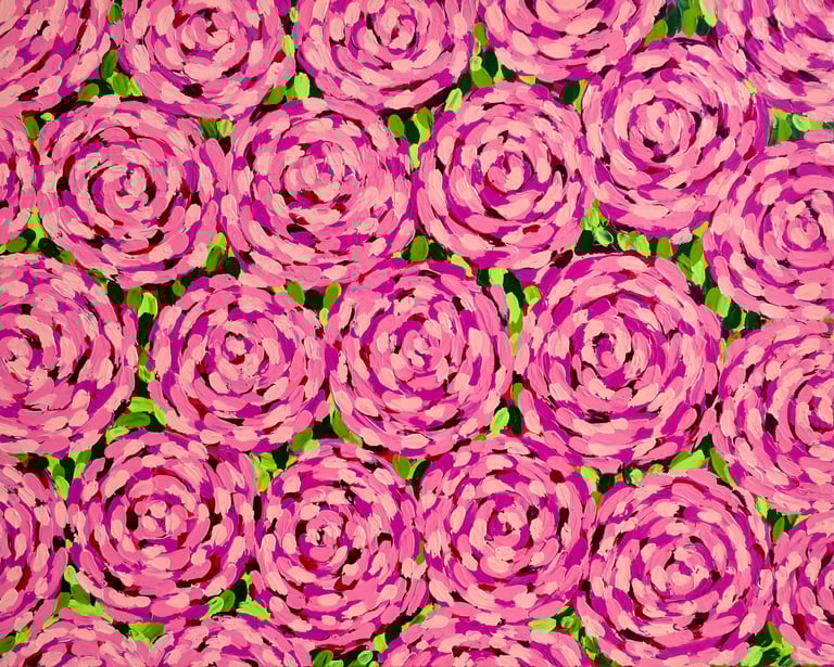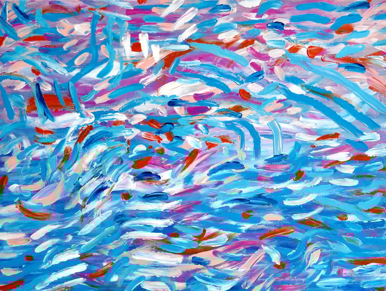 Without brushes or tools, the surface develops through playful contact, repetition, and physical dance.