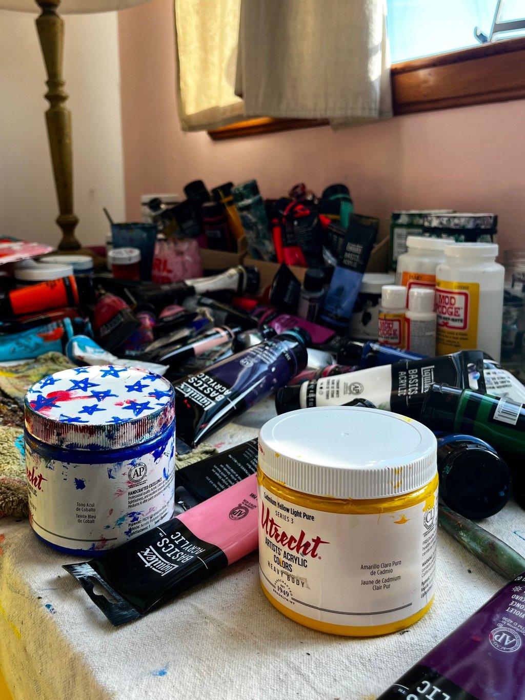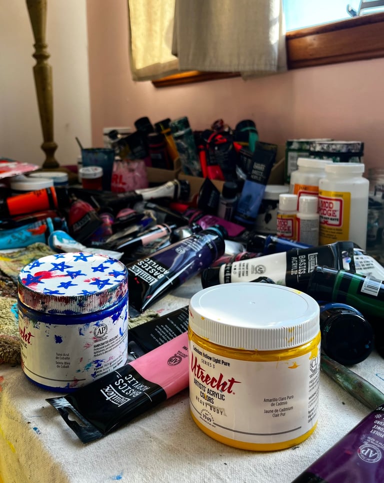 Music often sets the rhythm of the studio. Through layering, cutting, and reworking the surface over time, Jordyn follows what develops until the composition settles into its own internal balance.