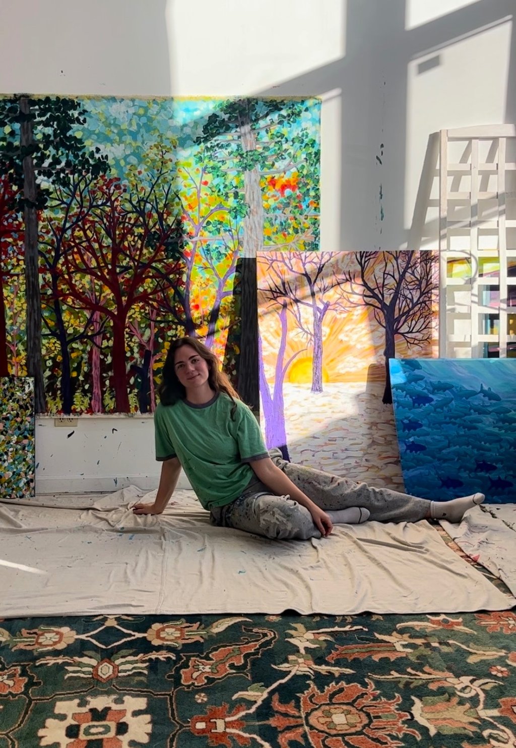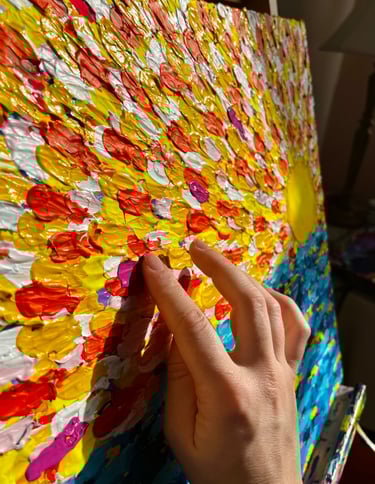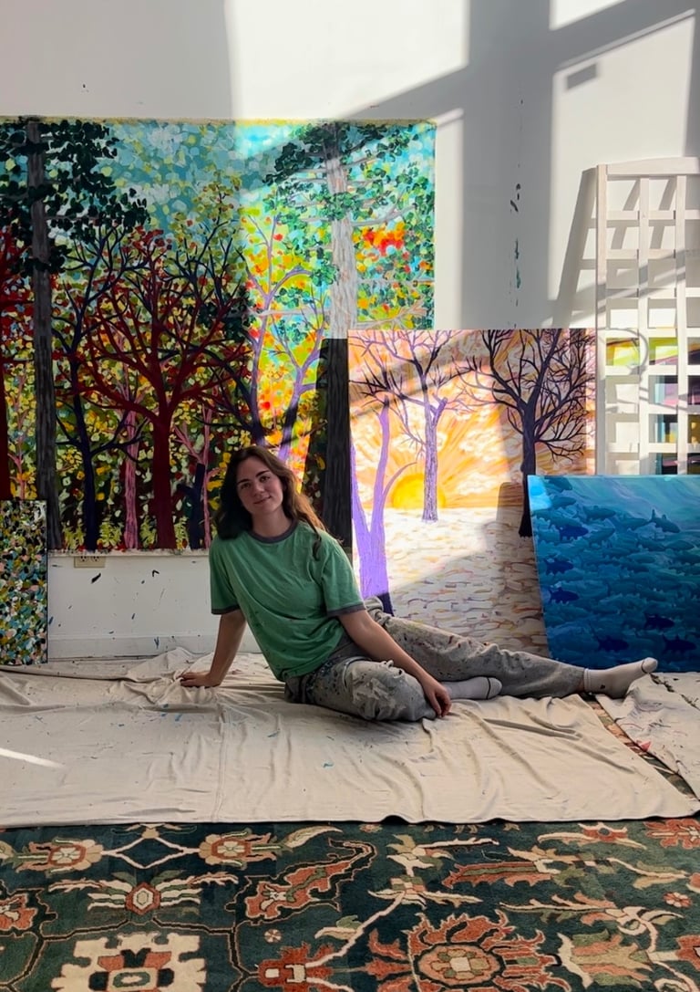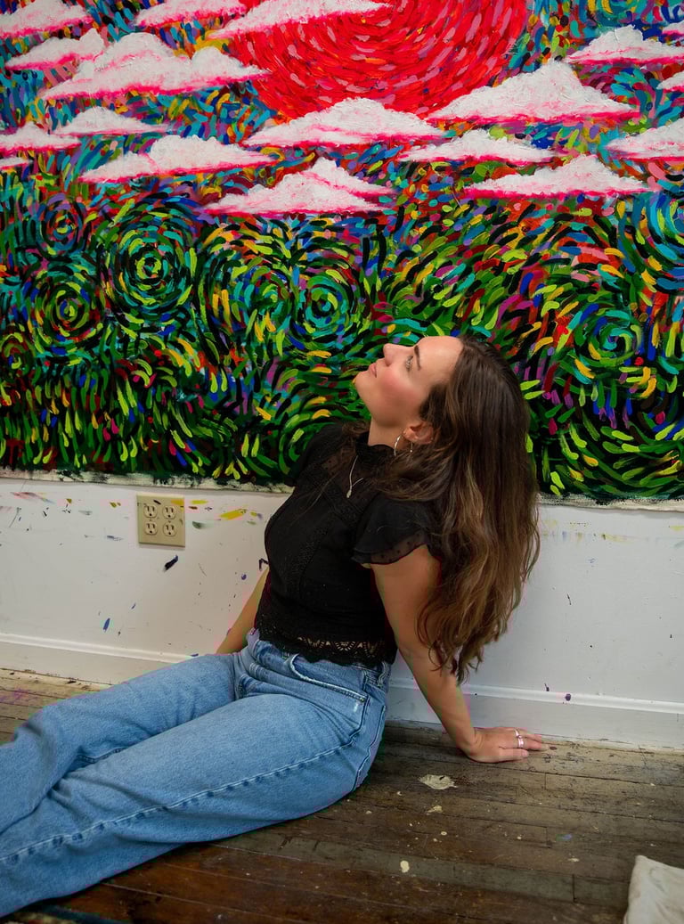 Her background in neuroscience and philosophy shapes how she understands perception and attention. Color is experienced as something felt as much as seen, and painting becomes a way of listening — to pattern, movement, and the subtle shifts that emerge through the act of making.