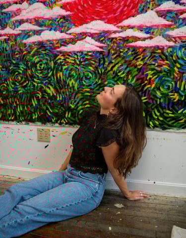 Jordyn Fullaway is a mixed media artist based in Rhode Island. Working with oil, acrylic, and collage, she approaches creation as an intuitive and physical process guided by color, rhythm, and sensation.