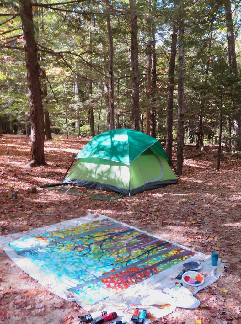 Time spent outdoors sharpens an awareness of color, movement, and scale. Shifts in light, weather, and terrain often enter the work indirectly, shaping the rhythm and atmosphere of the paintings.